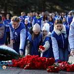 В крымской столице прошло торжественное мероприятие, приуроченное ко Дню защитника Отечества - на Могиле Неизвестного солдата в Гагаринском парке участники Всероссийского общественного движения «Волонтёры Победы» возложили цветы.