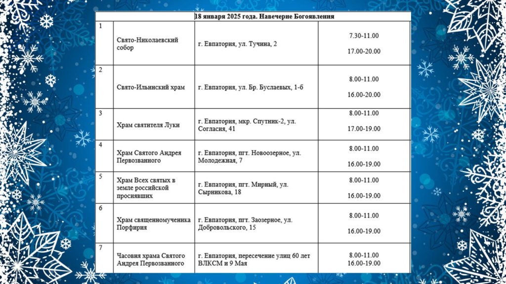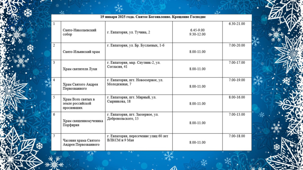 В администрации Евпатории опубликовали актуальный график служб для жителей города, кто хочет прийти в церковь.