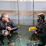 Водолазы службы в ГКУ РК «КРЫМ – СПАС» провели учения под водой. В ходе занятия спасатели продемонстрировали навыки погружения и взаимодействия под водой, сигналы взаимодействия с обеспечивающим сотрудником на поверхности, а также навыки крепления грузовых понтонов и другие умения.