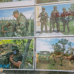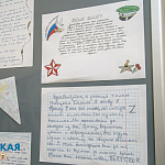 Представлен на выставке и сегодняшний день. Фотографии, сделанные в зоне проведения спецоперации, где участвует казачий штурмовой батальон «Таврида». Экспозицию дополняют рисунки и письма, которые сделали казакам-добровольцам дети в рамках акции «Письмо солдату».
