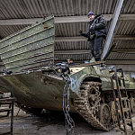 Слесари, сварщики, ремонтники занимаются нужным делом – дают второй шанс боевым машинам. В режим боеготовности приводятся даже самые повреждённые виды техники. Распространённые «ранения» – подрывы на минах и удары дронами. Практически во всех цехах идёт идентичная работа: восстанавливают двигатели, паяют радиаторы, меняют коробки передач. Самая сложная машина поступила с попаданием осколка, когда были перебиты силовые провода. Поэтому ремонтникам пришлось делать всю проводку заново.