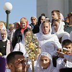 В этот невероятно тёплый день на службу в главном храме крымской столицы собралось огромное количество прихожан.