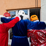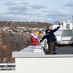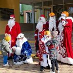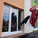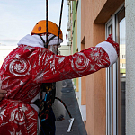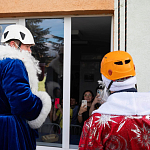 Пять спасателей в костюмах Дедов Морозов спустились на альпинистском снаряжении к окнам пациентов, чтобы подарить полезные подарки. "Волшебники" подарили атмосферу волшебства ребятам и пожелали скорейшего выздоровления, чтобы провести предстоящие каникулы дома.