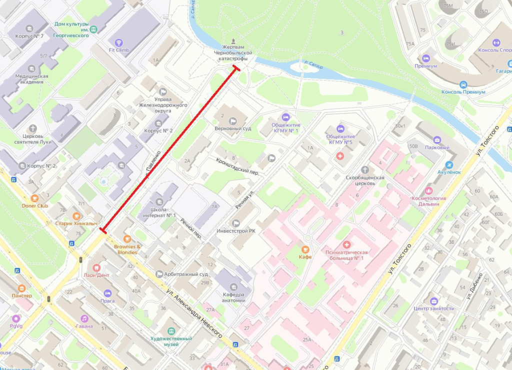 "Движение будет ограничено 22 июня с 06:00 до 12:00 часов по улице Павленко (на участке от перекрестка улиц Павленко и Александра Невского до парка имени Юрия Гагарина)", - отметили в администрации.