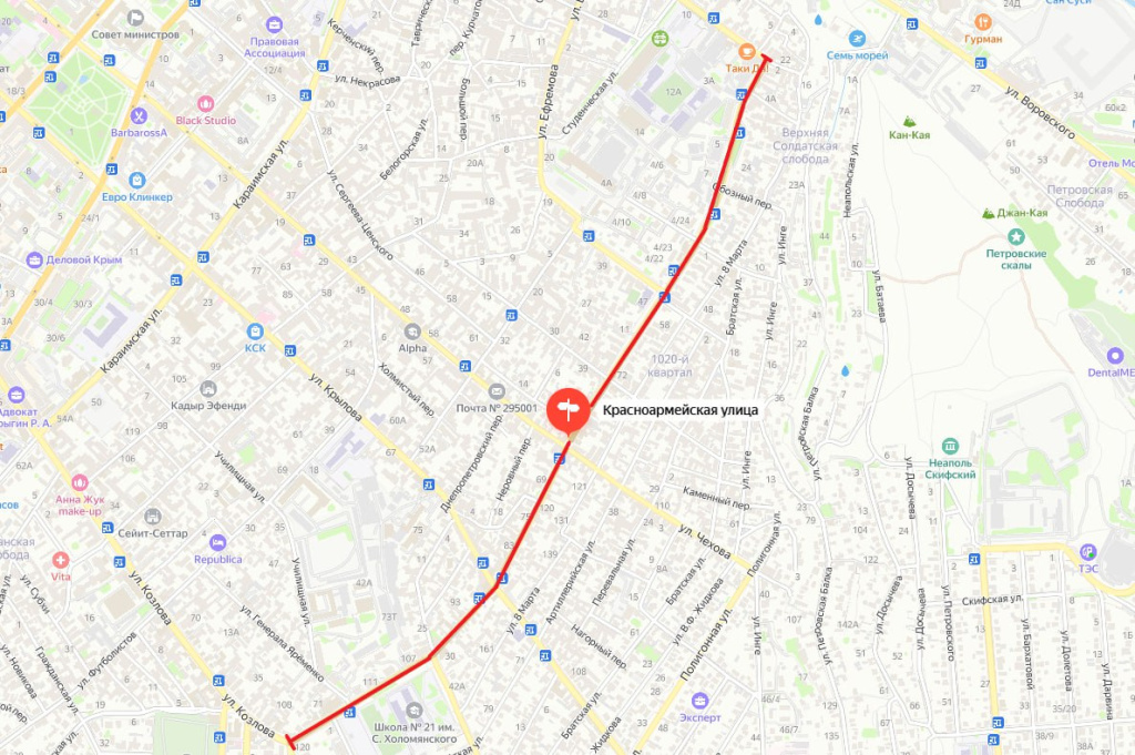 С 1 июня по 30 сентября на улице Красноармейская (от улицы Козлова до Фабричного спуска) будет ограничено движения транспорта, сообщили в пресс-службе администрации Симферополя.