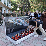 Участники установили лампадки к мемориалу памяти и провели театрализованную акцию, посвященную Памяти погибших от террористических актов "Мир, который мы любим, кем-то так не любим...", где ребята вспомнили события, которые символизируют произошедшее в Беслане.