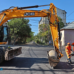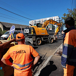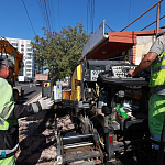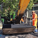 Дорожники работают в городе. Так, на улице им. 51-й Армии в Симферополе ремонтируют тротуары.