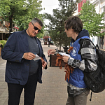 Вчера юные представители Всероссийского общественного движения «Волонтёры Победы» раздавали крымчанам оранжево-чёрные ленты.