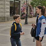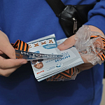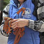 Акция «Георгиевская ленточка» будет проходить до 9 Мая во многих городах и районах республики. Сейчас она началась во всех российских регионах. Так, вчера волонтёры раздавали георгиевские ленточки прохожим в Москве. Добровольцы будут раздавать их в семи тысячах точек, в том числе за Полярным кругом и в 35 странах. В российских школах пройдёт специальный урок, посвящённый георгиевской ленточке. Это реплика традиционной георгиевской ленты, чёрный и оранжевый цвета которой стали символом военной доблести и славы России.