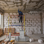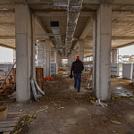 – В данный момент ведутся работы по закрытию контуров корпусов, кладка наружных и внутренних стен, затем прокладываем электропроводку и штукатурим стены. Параллельно по всем этажам делаем вытяжную и приточную вентиляцию. Этими работами будем заниматься весь осенне-зимний период, а уже весной, при благоприятных погодных условиях, начнём отделку.