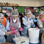 Ребята самых разных возрастов писали тёплые письма для военнослужащих, учились делать тактические браслеты, сухие каши и сухие души. Позже всё это передадут «за ленточку», туда, где эта помощь очень необходима, а иногда может спасти чьи-то жизни. Сухие обеды – это быстрый и доступный способ насытиться, а сухие души – средство гигиены, которым можно воспользоваться прямо в окопе на передовой. Письма с тёплыми пожеланиями и словами поддержки тоже передадут нашим солдатам, а те, в свою очередь, смогут написать ответные послания, которые передадут школьникам.