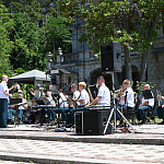 Гости услышат перезвон колокола часовой звонницы и насладиться концертом оркестра, который выступит возле сфинксов на большой террасе.
