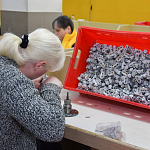 В других производственных помещениях этот материал раскладывают и фасуют. Есть отдельный цех для людей с ослабленным зрением – там работают 73 человека.