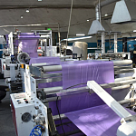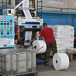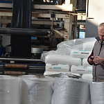 – Здесь производятся пакеты на экструдере. Из гранулированного сырья, после добавления красителей и добавок, идёт расплавление, затем производится плёнка, – рассказывает оператор-машинист 6-го разряда эталонного участка Владимир.